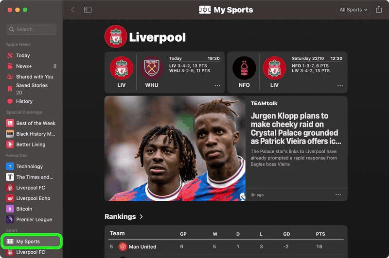 Apple News bao gồm một phần “Thể thao của tôi” mới có thể được tùy chỉnh để tổng hợp tin tức và sự phát triển liên quan đến các đội, giải đấu và vận động viên yêu thích của bạn.