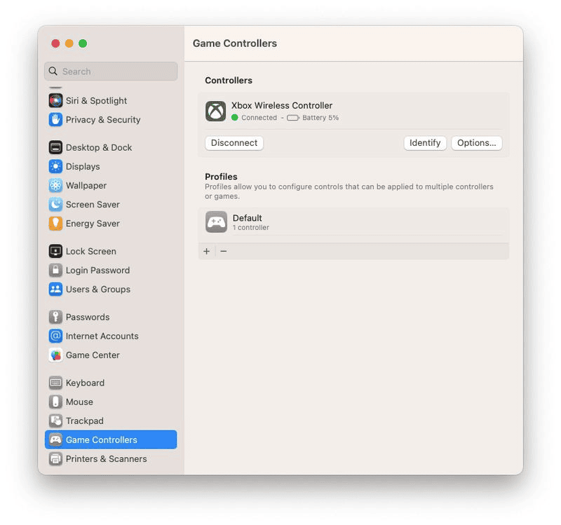 Trong Cài đặt hệ thống, có một menu bộ điều khiển trò chơi mới trong ứng dụng để quản lý bộ điều khiển trò chơi được kết nối với máy Mac. Menu cho phép người dùng ‌macOS Ventura‌ điều khiển các nút và ngón tay cái của bộ điều khiển với bàn phím của máy Mac, điều chỉnh mức phản hồi xúc giác, tạo cấu hình với các cài đặt trước cho nhiều bộ điều khiển, v.v.