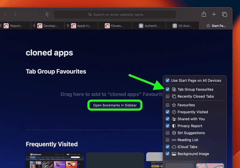 Trong Safari, các Nhóm tab riêng lẻ giờ đây có thể bao gồm các Trang bắt đầu chuyên dụng chứa các mục yêu thích được chọn từ dấu trang của bạn, cũng như một hình nền nền cụ thể.