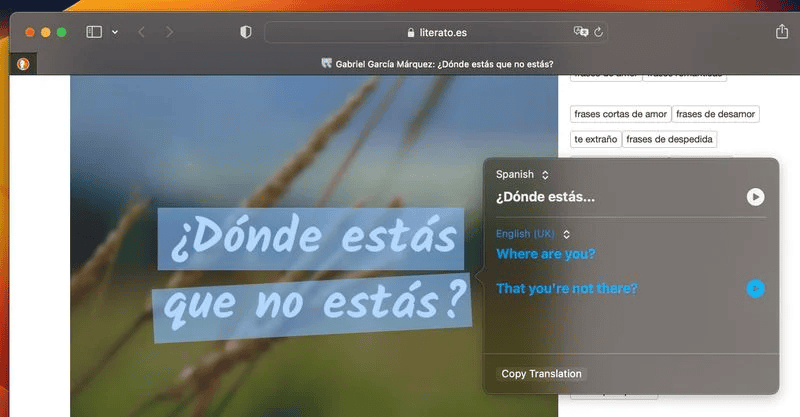 Lần tới khi duyệt trong Safari và bạn bắt gặp hình ảnh chứa ngôn ngữ mà bạn muốn dịch, hãy thử chọn văn bản bằng con trỏ chuột của bạn.