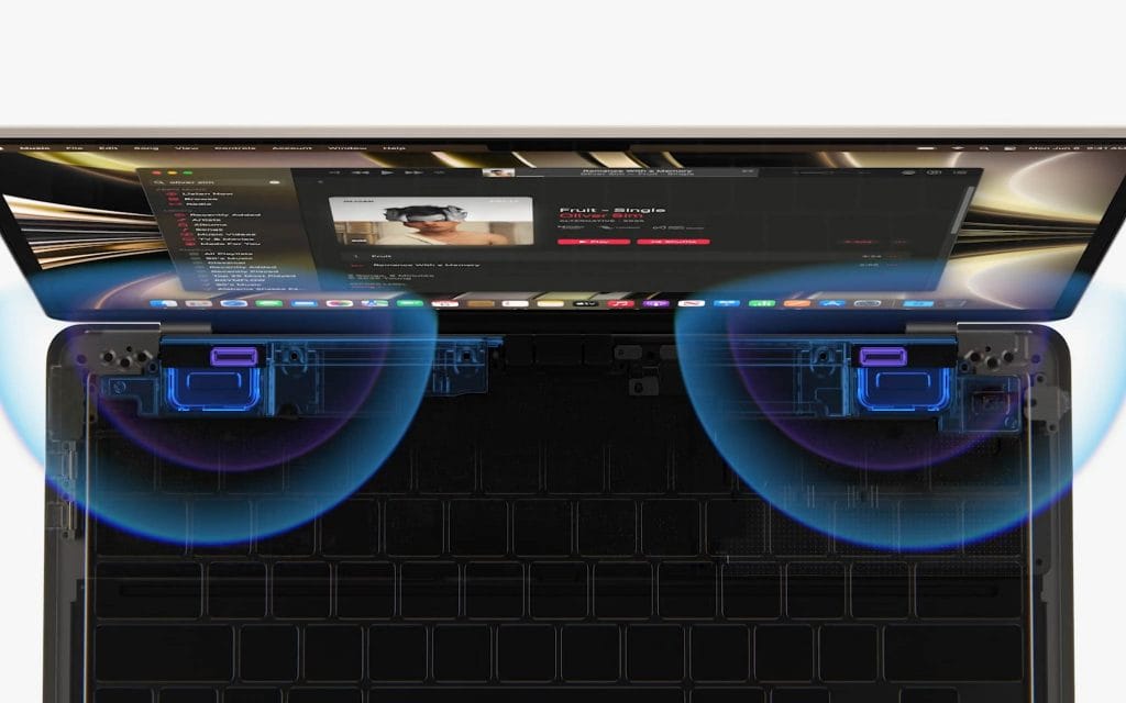 Nếu nhu cầu của bạn thường xuyên phải họp hay học online cần sử dụng camera thì MacBook Air M2 chắc chắn sẽ đáp ứng tốt nhu cầu. Bên cạnh đó thì Apple cũng nâng cấp hệ thống loa cho chiếc MacBook Air mới với chất lượng có thể sánh với bản Pro 13 inch.