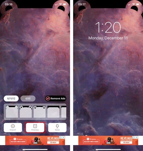 Bước 4. Khi đã có màn hình ẩn tai thỏ ưng ý, bạn nhấn Save để lưu nó về máy và cài nó làm màn hình điện thoại nhé.
