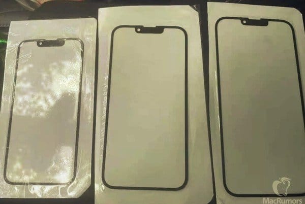 MacRumors lấy nguồn hình ảnh từ nhà cung cấp dịch vụ sửa chữa iRepair. Bức ảnh cho thấy ba tấm kính phía trước có kích thước khác nhau. Kích thước màn hình vẫn giống như iPhone 12 là 5,3 inch, 6,1 inch và 6,7 inch. Phần notch dường như nhỏ hơn một chút so với iPhone 12. Có lẽ điều này là do tai nghe hiện đã được chuyển lên trên cùng. Điều đó nói rằng, phần tai thỏ vẫn rất quan trọng và dự kiến sẽ cản trở trải nghiệm xem.