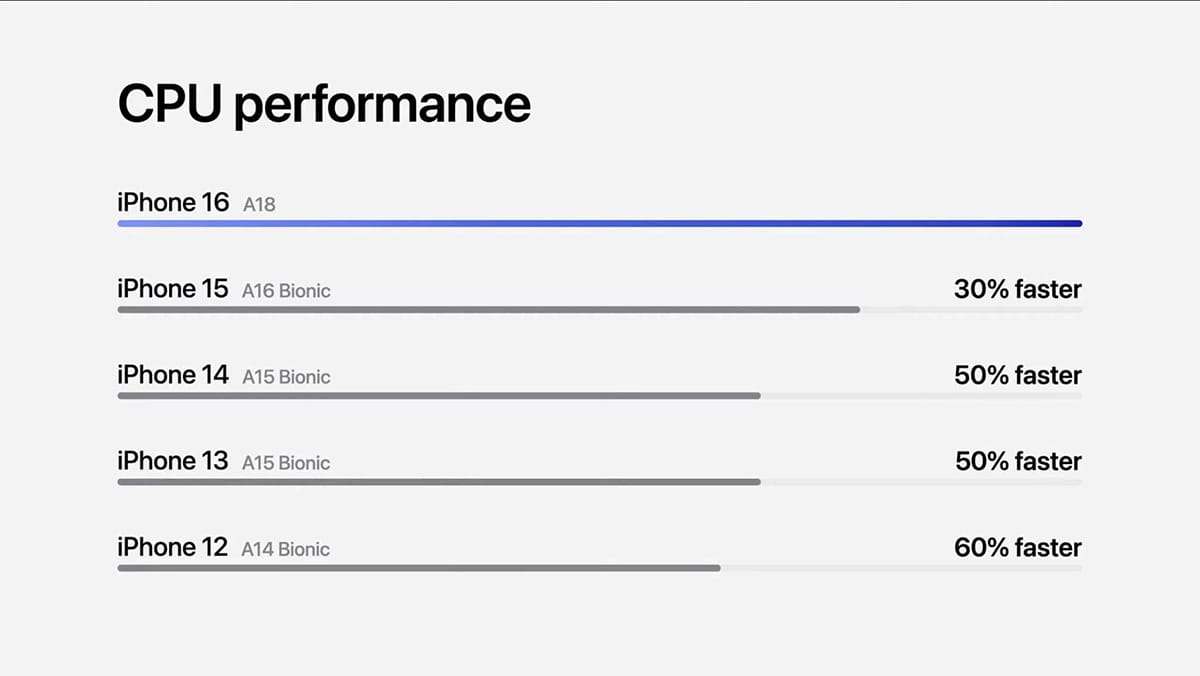 • CPU A18 nhanh hơn A16 Bionic tới 30%