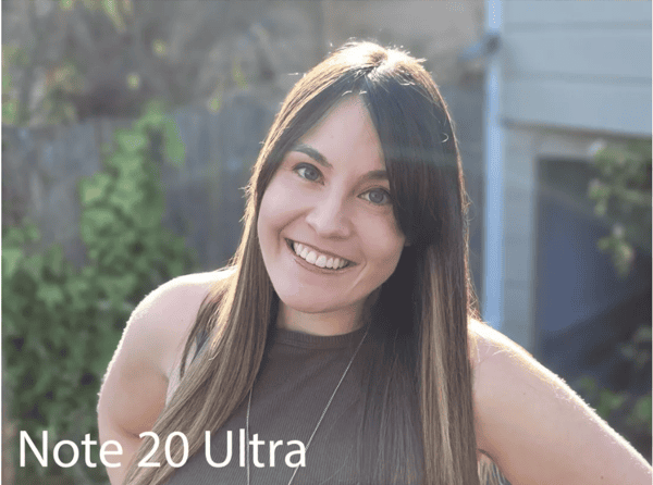 Trên camera trước, cân bằng trắng và phơi sáng của iPhone dễ chịu hơn và phù hợp với màu da của tôi chính xác hơn. Note 20 Ultra làm trôi màu da của tôi và làm cho tóc của tôi trông tối hơn. Nhưng với đèn nền mạnh, dải động rộng hơn một chút trên camera selfie của Note 20 Ultra cho ảnh và video.