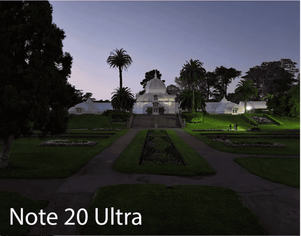 IPhone 12 Pro đã bổ sung chế độ ban đêm cho camera selfie và camera siêu rộng, vì vậy giờ đây cả ba camera đều có hiệu suất ánh sáng yếu tốt hơn so với các iPhone trước đó. Note 20 Ultra cũng cho phép bạn sử dụng chế độ ban đêm trên camera.