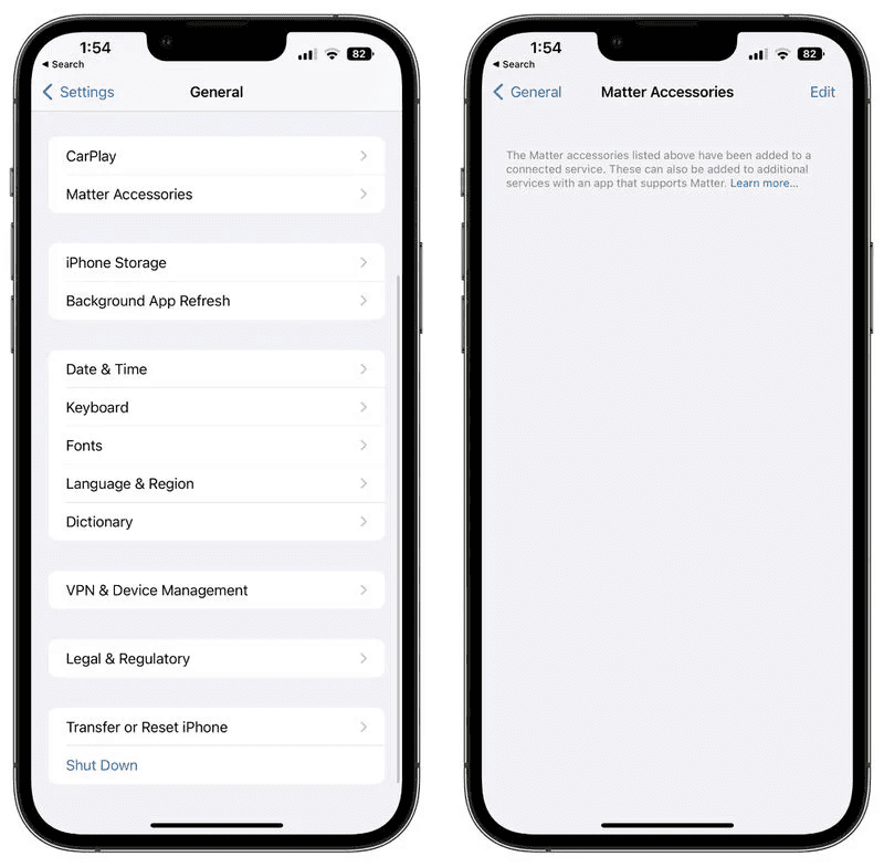 iOS 16.1 beta 1 giới thiệu phần “Matter Accessories” mới cho ứng dụng Cài đặt, cho thấy rằng Apple đang chuẩn bị cho việc ra mắt tiêu chuẩn nhà thông minh Matter vào mùa thu.