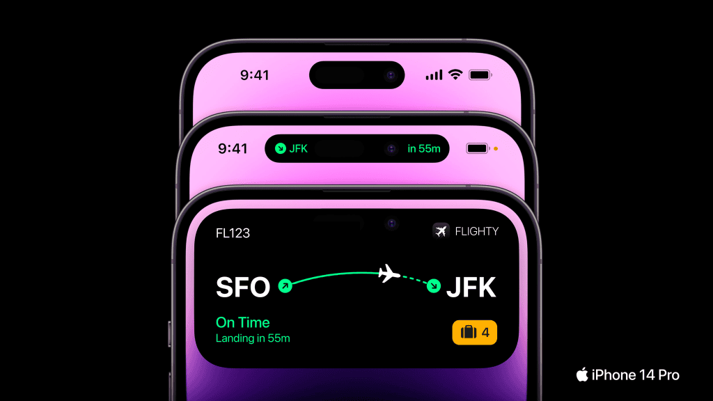 Hiện tại, Dynamic Island có thể hiển thị bộ hẹn giờ, tỷ số thể thao, cuộc gọi điện thoại đến, cảnh báo pin yếu, xác nhận Apple Pay, trạng thái sạc, chỉ đường trên ứng dụng Bản đồ, v.v..