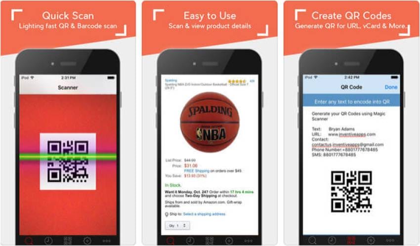 Quick Scan là một ứng dụng kiểm tra mã vạch sản phẩm trên IPhone tiện dụng, nó cho phép bạn chia sẻ mã qua tin nhắn văn bản hoặc email và giữ lại lịch sử quét, bạn có thể thoải mái truy cập vào những mã mình đã quét.
