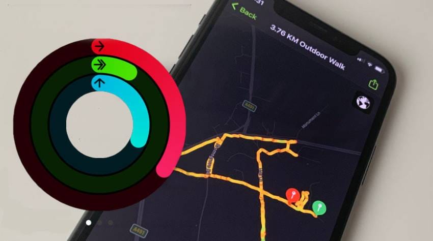 Apple Watch và Health sử dụng vòng hoạt động làm cách chính để hiển thị chuyển động hàng ngày. Định dạng hiển thị là ba vòng đồng tâm có màu đỏ, lục và lam. Màu đỏ biểu thị chi “Di chuyển”, được đo bằng lượng calo được đốt cháy. Màu xanh lá cây biểu thị “Tập thể dục”, được tính bằng tổng số phút. Màu xanh lam là “Đứng”, cho biết bạn đã đứng và di chuyển bao nhiêu lần trong vòng ít nhất 1 phút.